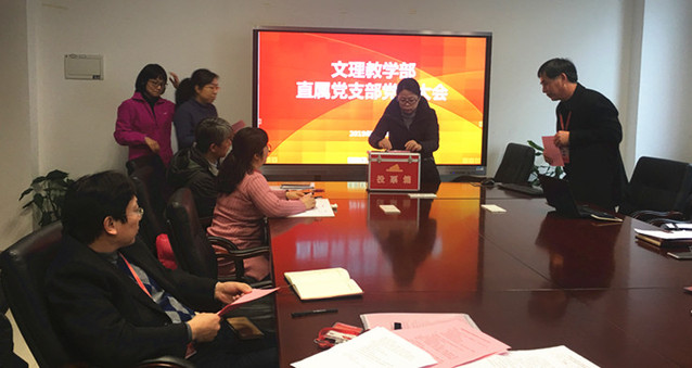 1月10日中午,文理教学部直属党支部换届选举大会在南苑2号楼302会议室隆重召开。大会由直属党支部委员张帅主持,书记秦禹权同志作工作报告,教学部全体党员参加了会议。