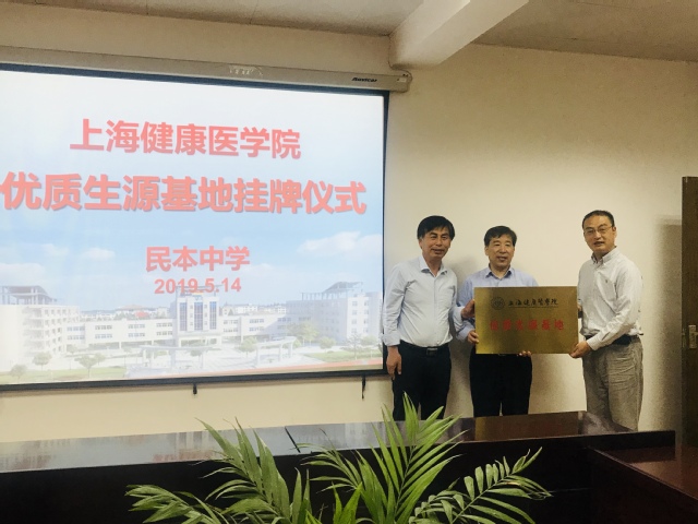 2019年5月14日,文理教学部代表学校前往上海市崇明区民本中学和上海市扬子中学开展优质生源基地挂牌仪式。双方签署了《上海健康医学院优质生源基地建设合作协议书》,并就合作内容进行了深入探讨。