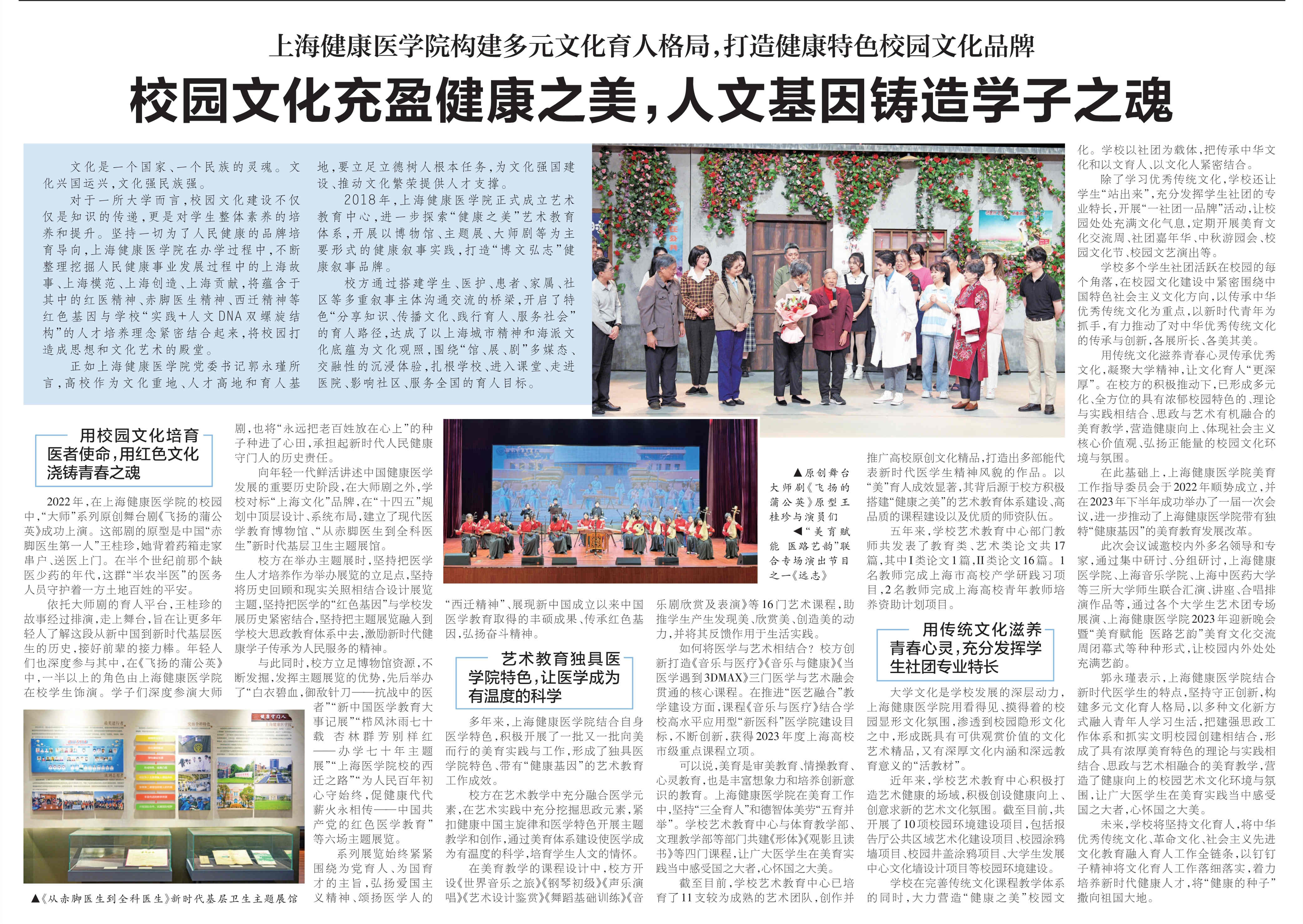 正如上海健康医学院党委书记郭永瑾所言,高校作为文化重地、人才高地和育人基地,要立足立德树人根本任务,为文化强国建设、推动文化繁荣提供人才支撑。