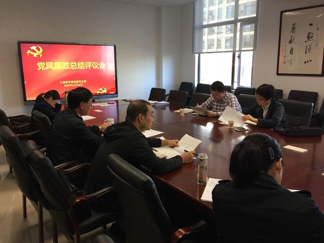 11月15日下午,文理教学部在南苑2号楼302会议室召开 2019年度党风廉政建设计划完成总结评议会。会议由直属党支部书记秦禹权主持,教学部领导班子成员、支委纪检委员出席了会议。校纪委办公室主任、监察处处长郑学文和医学影像学院党建员谭松珊出席会议并检查了相关材料。
