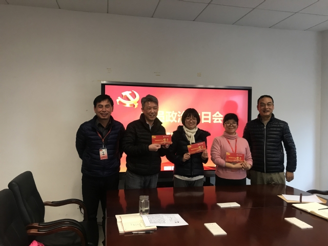 书记秦禹权、副书记耿铭分别为三位党员同志颁发了“党员政治生日贺卡”,并将《入党志愿书》复印件作为生日礼物赠送给他们,以资纪念。这次支部贴心地为过政治生日的党员每人定制了一张精美的《党员政治生日贺卡》,这张带有入党誓词和生日寄语的特殊“生日卡”,打动了参会的每个党员,大家纷纷表示,会继续在有限的生命里,不断为党的伟大事业添砖加瓦,让政治生命的光辉更加久远。