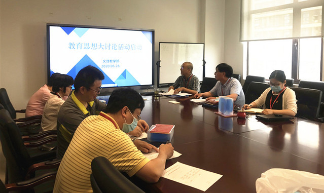 2020年5月28日,文理教学部在南苑2号楼302室召开全体教师大会暨教育思想大讨论启动工作会议。全体教师参会,教学部主任耿铭作了主旨发言。会议由教学部直属党支部书记秦禹权主持。