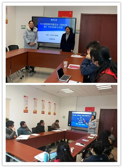 2021年1月7日中午12点,文理教学部数学教研室陈立范、侯丽英两位老师在南苑2号楼306会议室开展了“对分课堂教学模式在《线性代数》中的探索与实践”的教师沙龙活动,文理教学部的老师们积极参加和讨论。