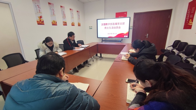 首先讨论通过了《文理教学部直属党支部关于认真开好2020年度领导班子成员民主生活会的实施方案》,然后结合教学部工作实际,秦禹权书记就筹备召开领导班子成员民主生活会进行了动员部署,传达学习了上级党委文件精神,明确指出了2020年度民主生活会的主题:认真学习贯彻习近平新时代中国特色社会主义思想,加强政治建设,提高政治能力,坚守人民情怀,夺取决胜全面建成小康社会、实现第一个百年奋斗目标的伟大胜利,开启全面建设社会主义现代化国家新征程。具体明确了本次领导班子成员民主生活会参加人员范围、具体时间节点、工作内容及相关要求,他强调指出领导班子成员要紧紧扣住本次民主生活会主题,合理安排时间,加强组织学习,特别是自学,学习领会习近平新时代中国特色社会主义思想、《习近平谈治国理政》第三卷和有关文件精神,增强政治意识,提高政治站位,对照习近平总书记关于严肃党内政治生活的重要指示精神,对照党章党规党纪,对照初心使命,把自己摆进去、把职责摆进去、把工作摆进去,认真查摆突出问题,深挖问题根源,认真撰写班子和个人对照检查材料,全面进行一次“政治体检”,为民主生活会的顺利召开和今后的整改落实做好充分准备。