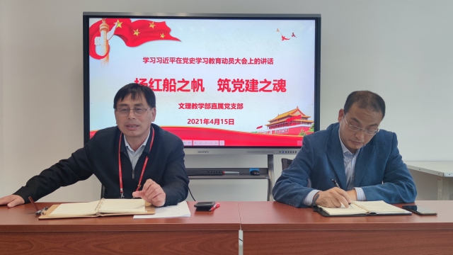4月15日下午,文理教学部直属党支部在南苑2号楼308会议室开展主题党日暨全体教师政治理论学习,支部书记秦禹权主持会议。