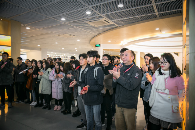 王树华主任向彭俊馆长赠书,彭俊表示,图书馆将开启傅雷图书角供师生阅读。郑沈芳书记和周俊部长对为期四周的“手稿墨迹展”揭幕,同参加开展仪式的师生一同参观了展览。