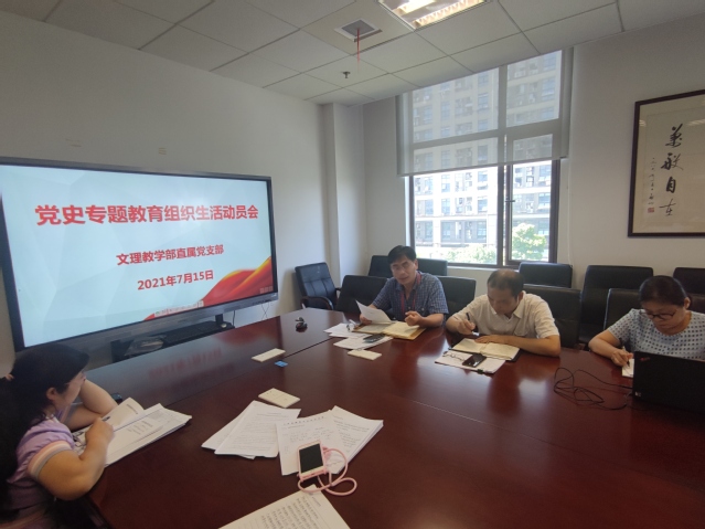 根据中央党史学习领导小组办公室和上海市委党史学习小组办公室及相关精神,结合学校党史学习教育工作整体推进,以及在学校召开第一次党代会筹备工作的背景下,7月15日下午,文理教学部直属党支部在南苑2号楼302会议室,召开全体教师党员党史学习教育专题组织生活动员会。