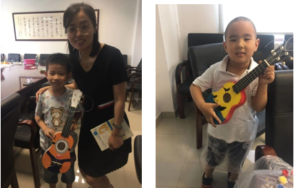 为了激发孩子创造美的兴趣,增强孩子对手工制作的热情,促进家长和孩子之间的亲子感情,发展孩子的创造力和动手操作能力,2021年7月1日上午,文理教学部开展了亲子尤克里里DIY活动,让孩子们打造属于自己的乐器。