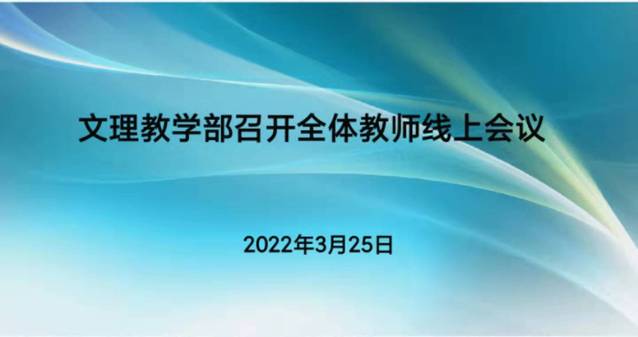 3月25日傍晚五点,文理教学部在群里发出召开全体教师线上会议的紧急通知,作为落实学校布置的疫情防控应急演练的一种校外模式,短短一刻钟内,教师们纷纷应约而至,相聚线上,会议由直属党支部书记秦禹权主持,分别就当前疫情防控中的重点工作和线上课程教学事宜进行了部署和传达。