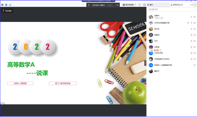 2022年阳春三月的校园春意盎然,突如其来的新冠疫情有如倒春寒,让咱们学校的教学重心又回到了在线课堂。但学校迎接教育部本科教学评估的工作步骤丝毫没有停歇。为了推进数学类基础课程教学模式的改革创新与优化升级,提高本科教学质量,4月17日下午,数学教研室的所有老师参加完教发中心的培训后,齐聚“腾讯会议”拉开了数学教研室老师们说课程的序幕。