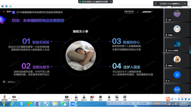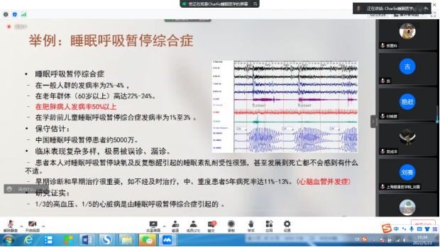 5月23日,“海上健康”文化论坛第九讲、2022年健康讲堂第一讲在“腾讯会议”开讲,文理教学部邀请了睡眠医学专家、文理教学部客座教授吴少辉博士做了一场关于进行了“医学与国人睡眠健康”的讲座。在讲座中,吴博士从国家最新出台的《“十四五”国民健康规划》中对睡眠健康的重视开始,介绍了国家的睡眠健康政策,介绍了我国睡眠健康产业的发展状况,睡眠学科的基本概貌等内容,并从健康睡眠市场消费特征及趋势洞察报告谈起当今社会任何年龄阶段的人或多或少都有过睡眠问题,睡眠问题会造成各种身体的不良状况,也关联各种慢性病,引发身体问题,睡眠对人类的健康起到至关重要的作用,呼吁大家了解睡眠健康、重视睡眠健康、拥有健康睡眠。吴博士还与在线与听讲座老师们进行了互动,解答了老师们的一些关于睡眠方面的困惑,老师们受益匪浅。(文:李兰英 图:侯丽英)