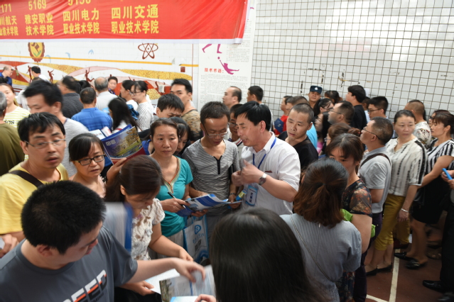在咨询会现场,学校校旗悬挂在醒目的位置,很快吸引了众多家长前来问询。招生宣传团队耿铭、秦禹权老师,徐培文、陈国菠同学一起不厌其烦、耐心细致向学生和家长介绍学校概况、专业优势、招生计划、就业前景和往年录取分数情况等多方面信息,尤其是两位同学用攀枝花乡音把自己在学校的切身感受最真实的传达给了前来咨询的人群,取得了良好的效果。咨询会上,我校咨询台前自始至终人群集聚,络绎不绝,事先准备好的200份材料和二维码卡片很快发放一空。为满足家长学生的需求,又临时加印了500份材料,到咨询会结束时也所剩无几。